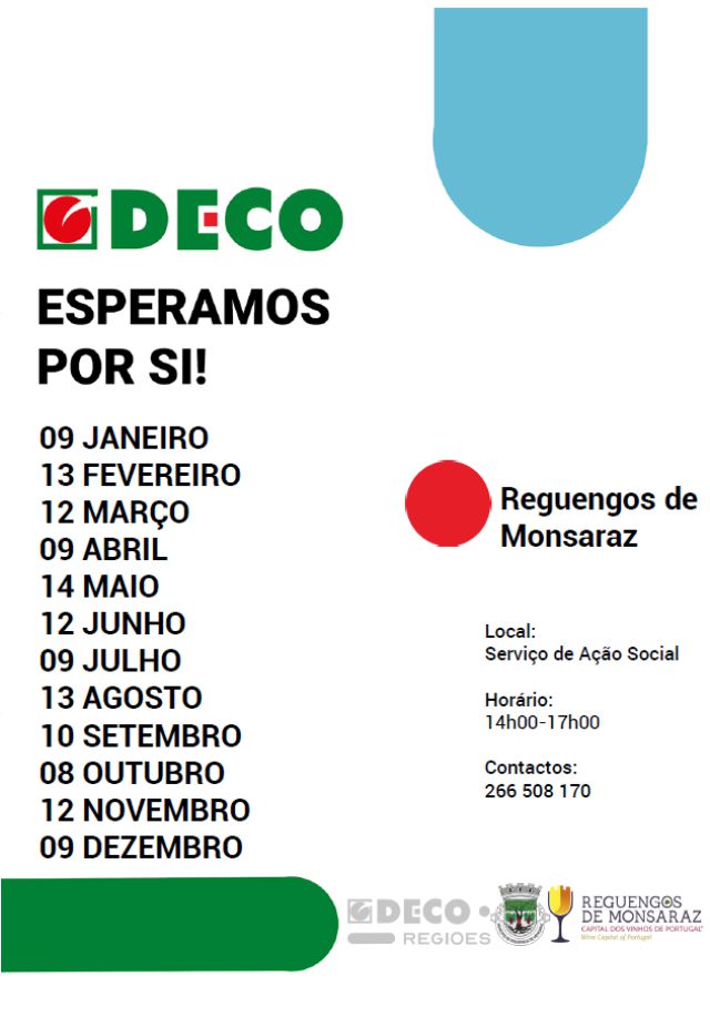 Atendimento mensal da DECO aos consumidores em Reguengos de Monsaraz.