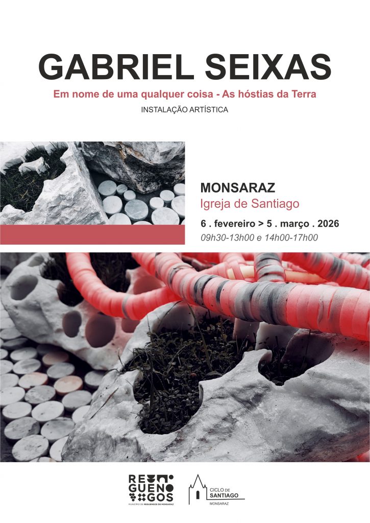 A Igreja de Santiago, na vila medieval de Monsaraz, acolhe a partir do próximo dia 6 de fevereiro a exposição “Em nome de uma qualquer coisa – As hóstias da Terra“, do artista Gabriel Seixas. A mostra apresenta-se como uma instalação artística que explora a intersecção entre formas minerais, elementos orgânicos e estruturas contemporâneas.