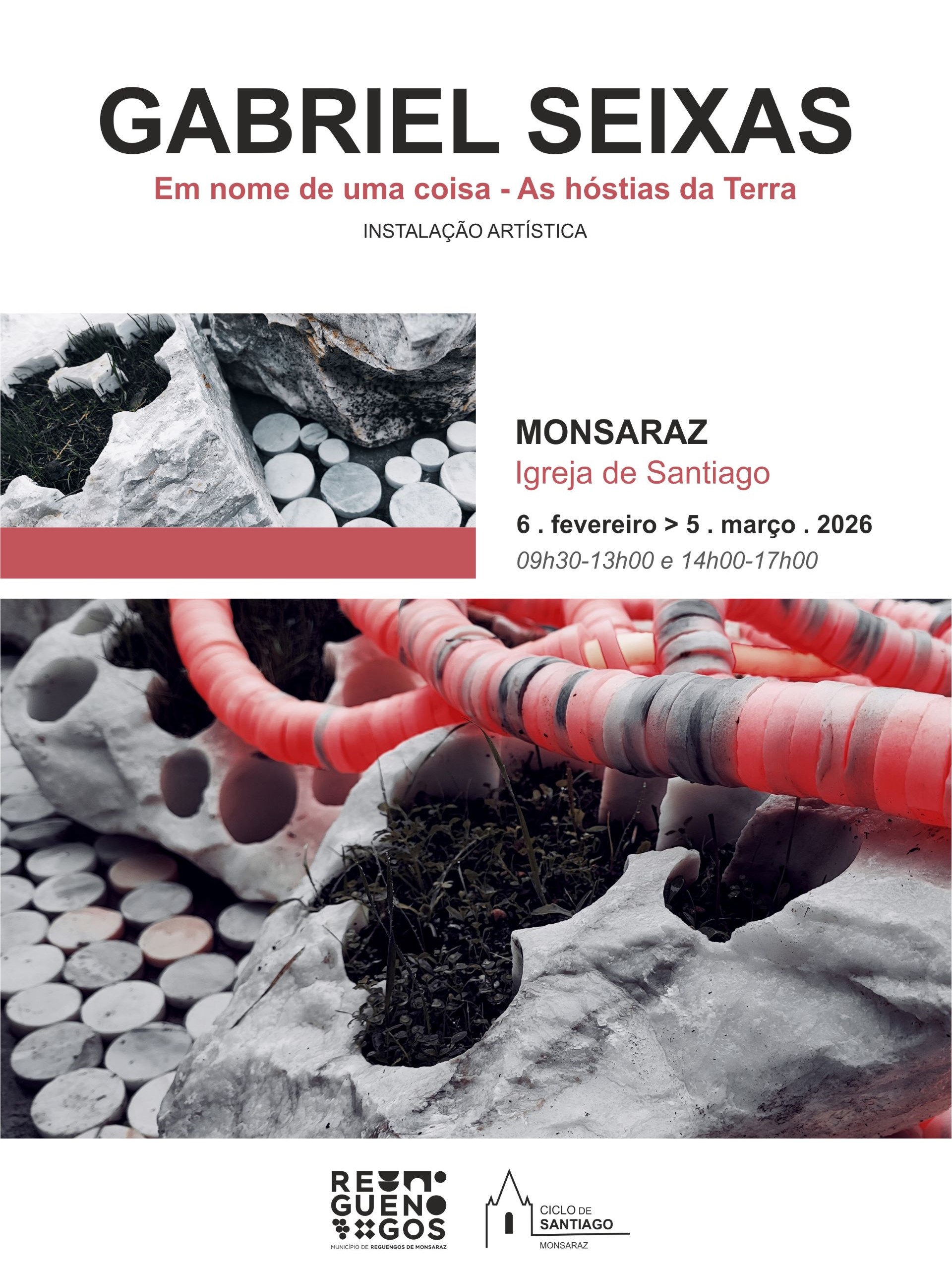 A Igreja de Santiago, na vila medieval de Monsaraz, acolhe a partir do próximo dia 6 de fevereiro a exposição “Em nome de uma coisa – As hóstias da Terra“, do artista Gabriel Seixas. A mostra apresenta-se como uma instalação artística que explora a intersecção entre formas minerais, elementos orgânicos e estruturas contemporâneas.