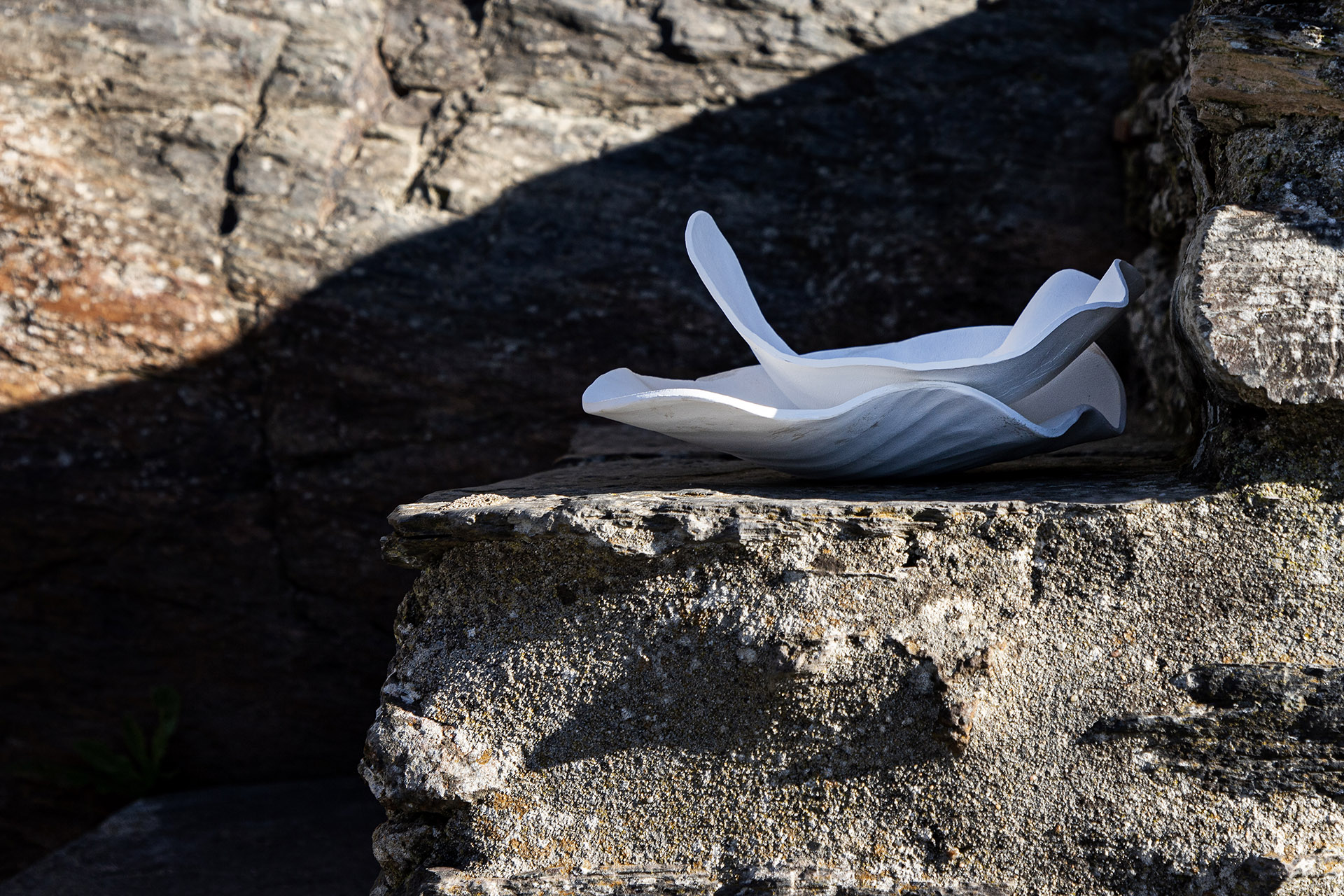 A artista francesa explica que há um “encontro entre a força da matéria-prima e a delicadeza da natureza. Encontro entre o barro esculpido pela força da casca de rolhas centenárias, tão poderosa e tão intensa. A matéria-prima é moldada, transportada, impregnada com a seiva da vida para criar peças únicas. Esculturas orgânicas, um encontro entre a suavidade do toque, a delicadeza das linhas, peças delicadas como um equilíbrio sensível entre poder e delicadeza. As formas sensuais, aéreas e envolventes formam uma decoração maternal para as esculturas. Jogando entre a força do arenito e a delicadeza da porcelana, as esculturas nascem desta intensidade”.