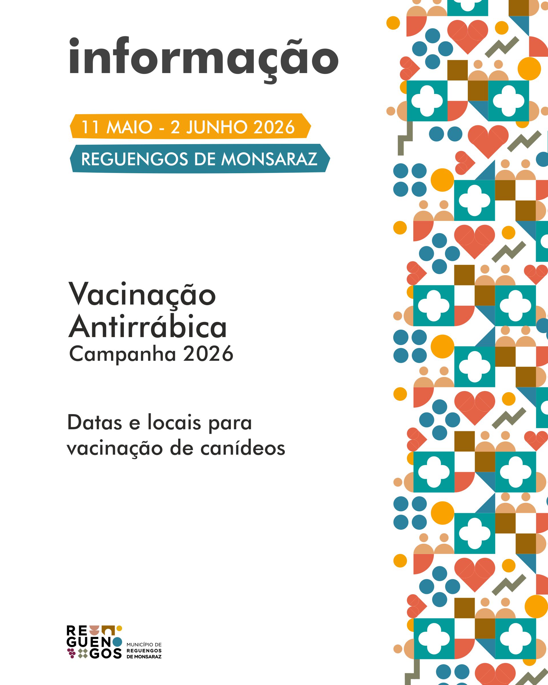 Consulte o calendário e taxas em www.cm-reguengos-monsaraz.pt/vacinacao-antirrabica/
